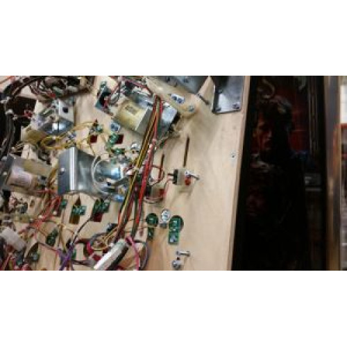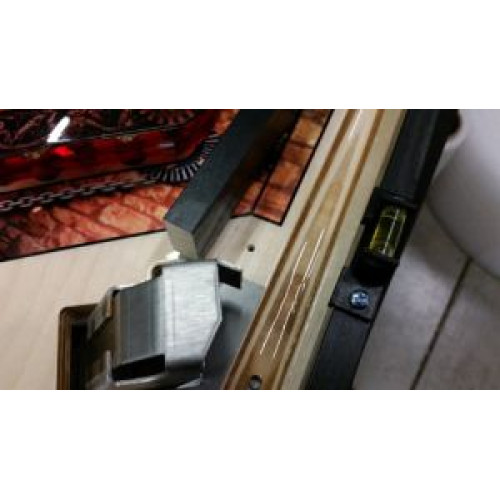 Step 3 (optional): Lift playfield and remove the screws that hold on the inner wood rail. This step may not be necessary on some games as the protector will not need to slide under the inner wood guide rail. See images above.